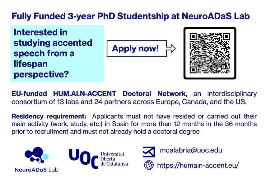 Interested in studying #accented speech from a #lifespan perspective? Apply now at: https://shorturl.at/7teGC