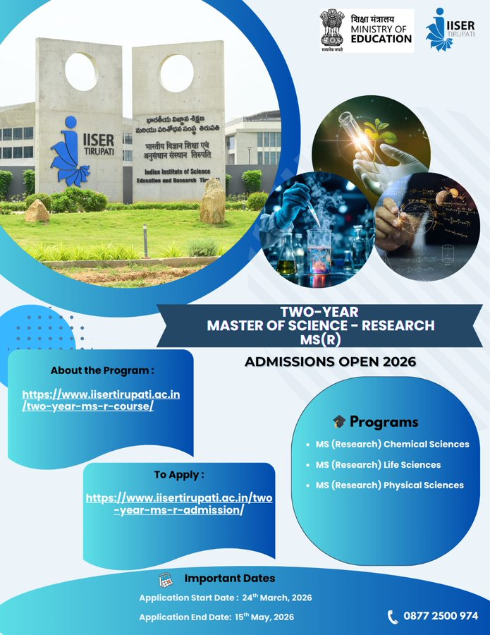 Two-Year Master of Science – Research MS(R) Programs at IISER Tirupati